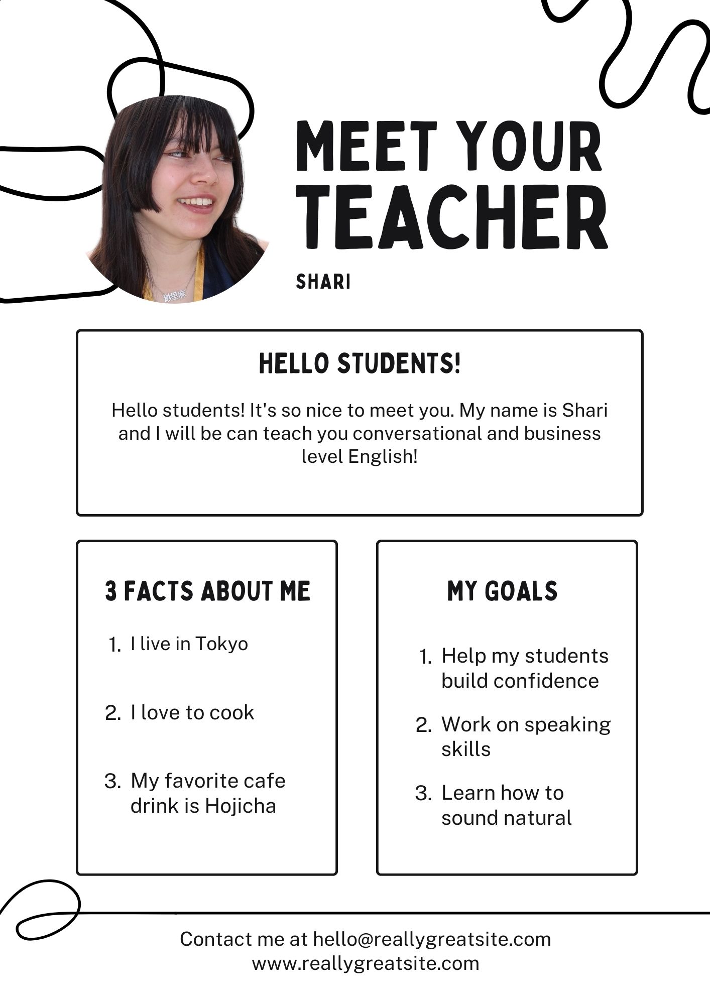 My lessons are friendly and relaxed. Let’s enjoy learning English together!